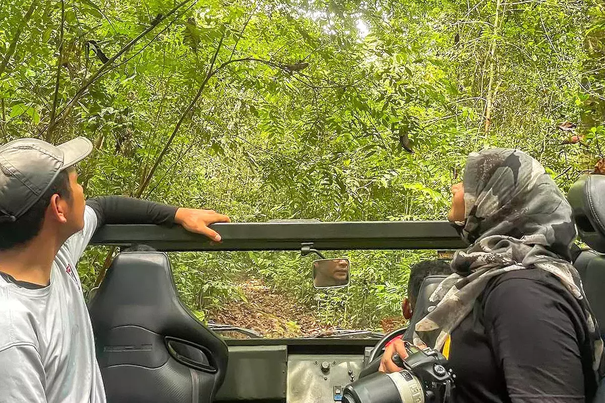 At the entrance of the Bunker Trail, we proceed slowly along the 14-kilometre dirt road, scanning the forest edges for birds, primates, and other wildlife. Several kilometres into the reserve, the tour continues on foot with a guided jungle walk along a quiet trail. Here, your experienced nature guide will introduce the forest’s remarkable flora and fauna, revealing the intricate relationships between plants, insects, and animals that make Panti Forest Reserve such a vital and fascinating ecosystem.